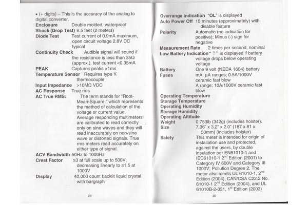 DC Voltage ranges 400mV, 4V, 40V, 400V, 1000V, accuracy 0.6%